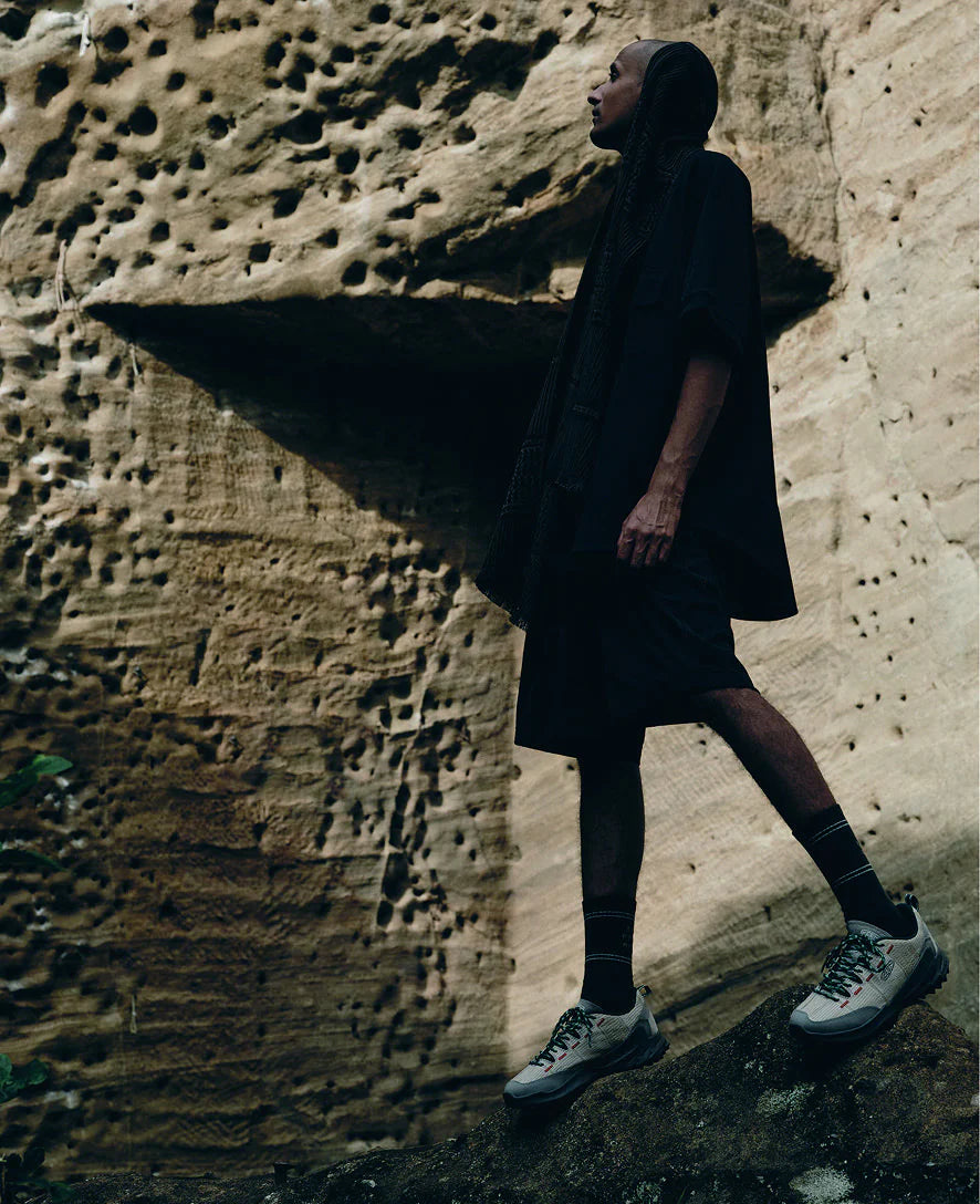 Our friends at creative fashion brand ELNEST in Japan gave our fast & light hiker a unique laser-etched leather upper. Crag heritage, reborn for modern life in the city.